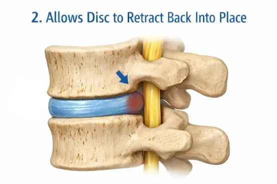 Unlike traditional physical therapy, medicine or injections that often focus on temporary symptom relief, spinal decompression is designed to work directly on the affected discs by: